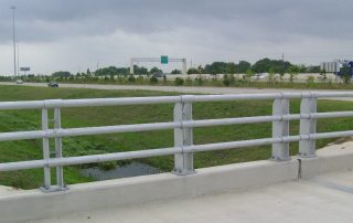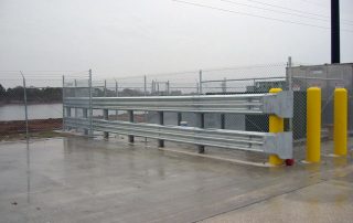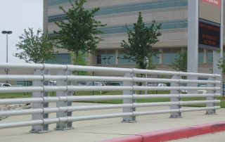 Guard rails are structural supports that assist your company in adherence to safety standards. Sturdy metal railing of aluminum or stainless steel in conjunction with a metal or concrete bollards insures safety and protection of building structures. National Fence Company helps construction companies to implement and maintain compliance with city, county and state safety regulations by offering temporary metal guard rails for use on the job site. Highway guard rails main purpose is to veer cars from entering oncoming traffic as well as protect a driver from crashing into a solid object or driving off of an elevated area.